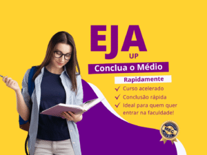 O EJA UP é a modalidade mais rápida e eficiente de Educação para Jovens e Adultos. Com ele, você conclui o Ensino Médio em até 6 meses, com flexibi…